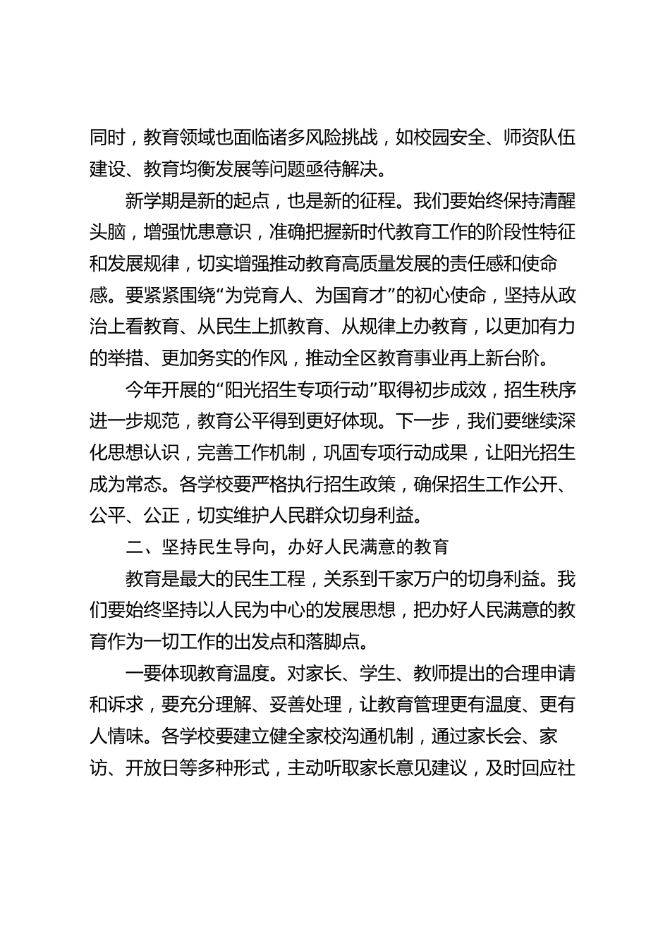 在區(qū)2025年秋季學(xué)期開學(xué)工作會議上的講話