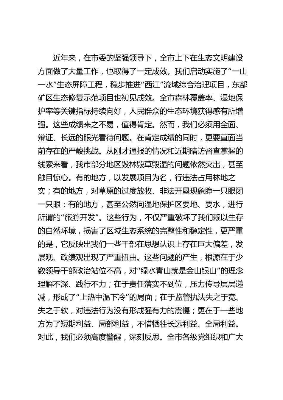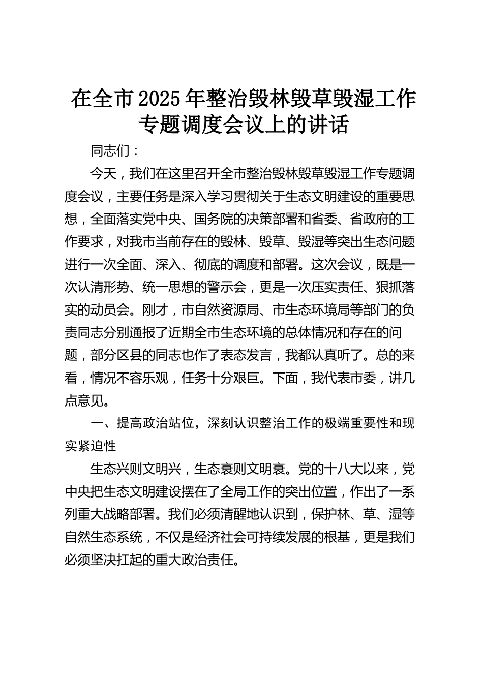 在全市2025年整治毀林毀草毀濕工作專題調(diào)度會議上的講話