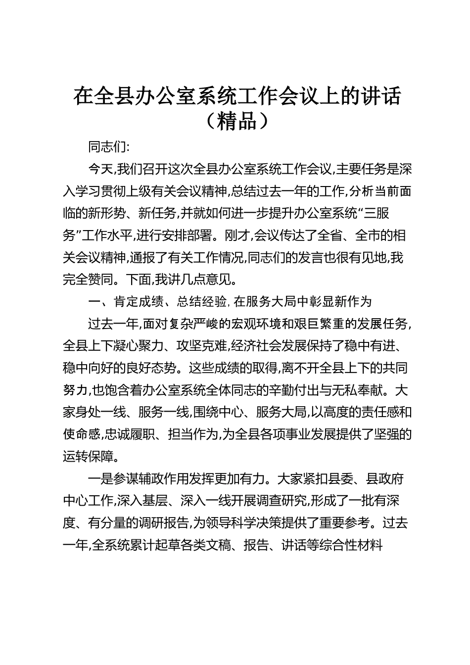 在全縣辦公室系統(tǒng)工作會議上的講話(精品)