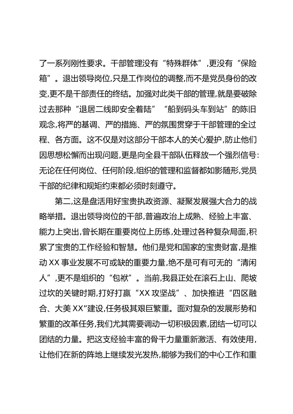 在全縣加強(qiáng)退出領(lǐng)導(dǎo)崗位職級干部管理工作推進(jìn)會(huì)上的講話