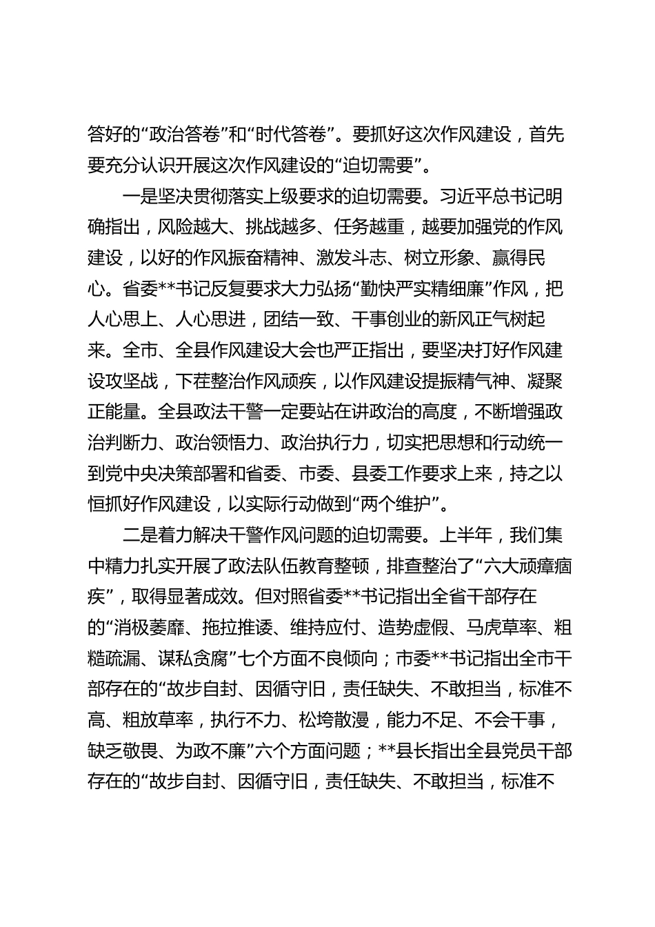 在全縣政法機(jī)關(guān)“提士氣強(qiáng)擔(dān)當(dāng)建機(jī)制促發(fā)展”作風(fēng)建設(shè)推進(jìn)大會(huì)上的講話