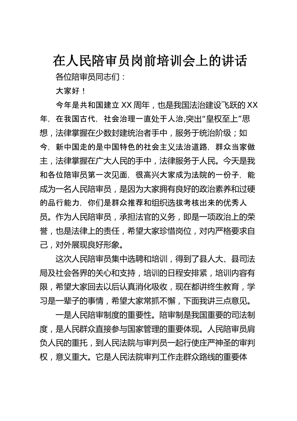 在人民陪審員崗前培訓(xùn)會(huì)上的講話