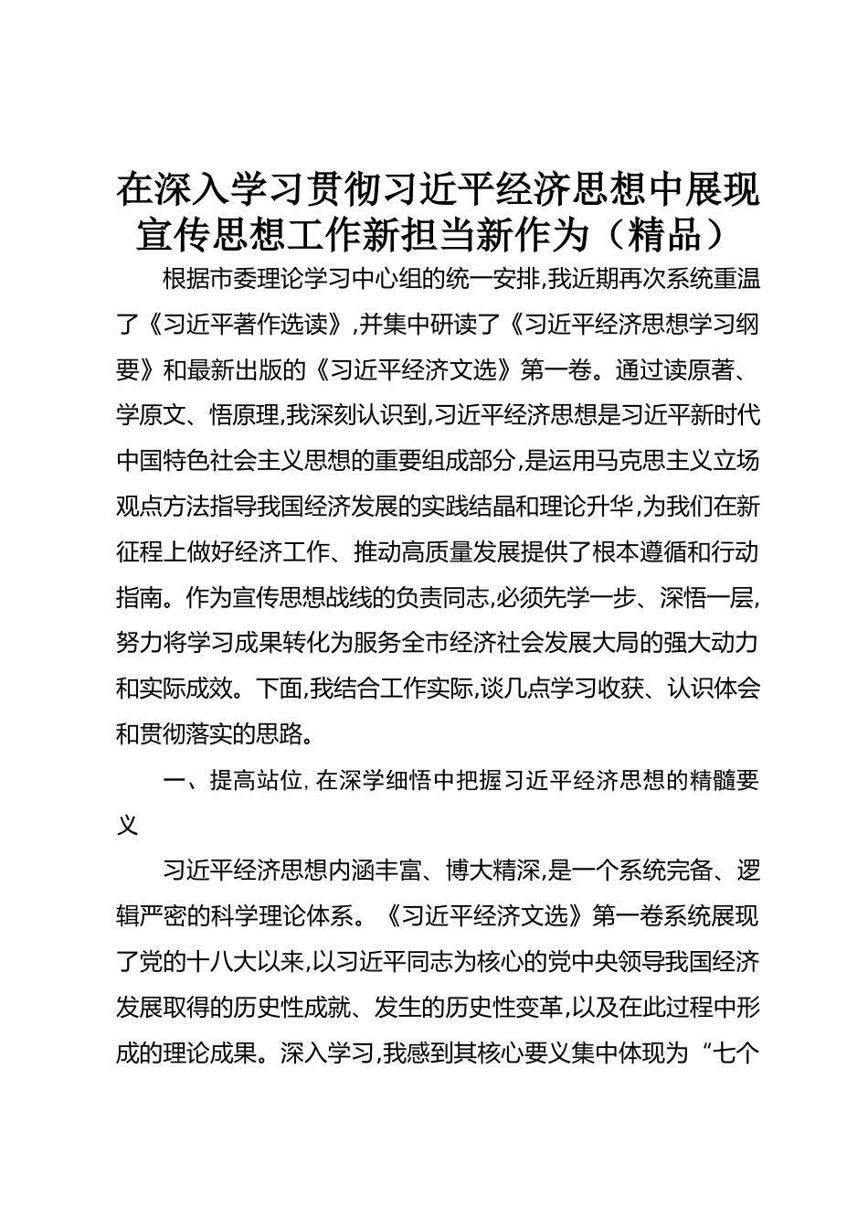 在深入學(xué)習(xí)貫徹習(xí)近平經(jīng)濟(jì)思想中展現(xiàn)宣傳思想工作新?lián)?dāng)新作為(精品)