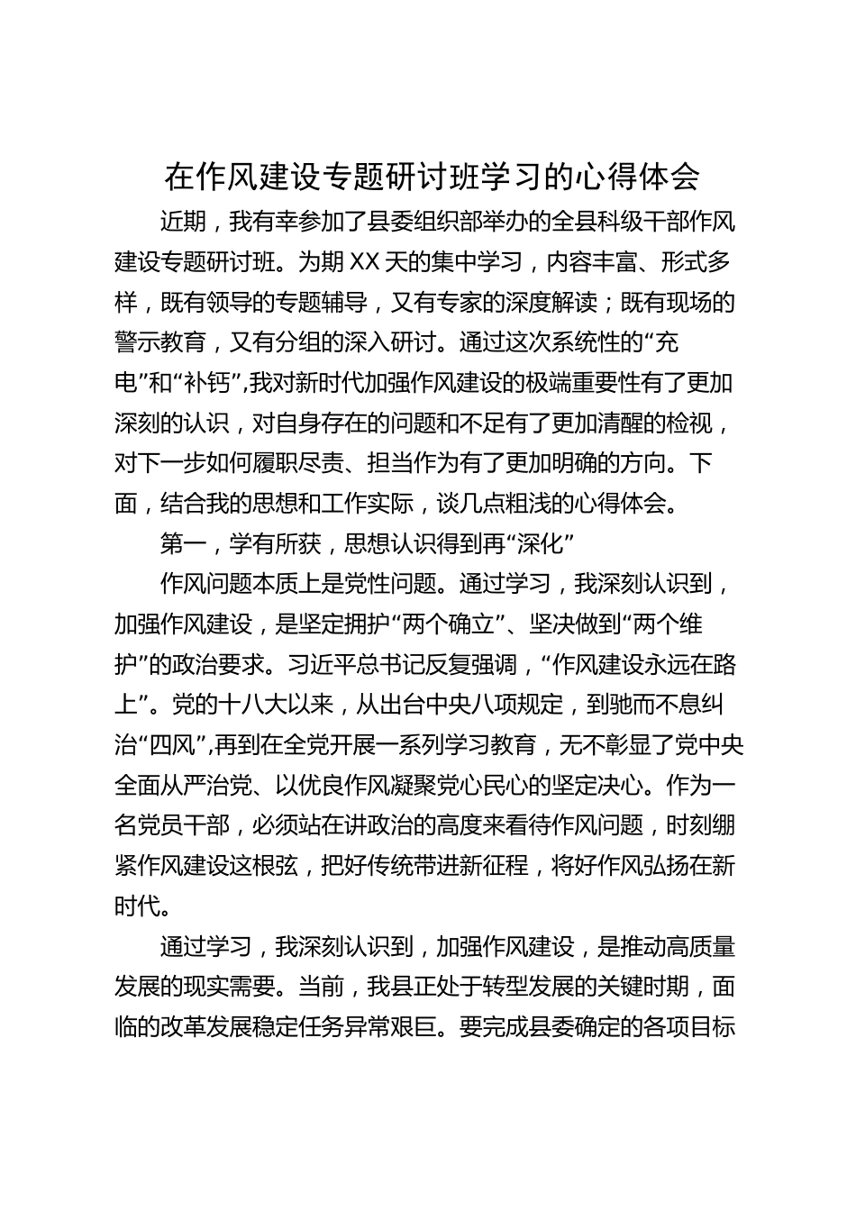 在作風(fēng)建設(shè)專題研討班學(xué)習(xí)的心得體會(huì)