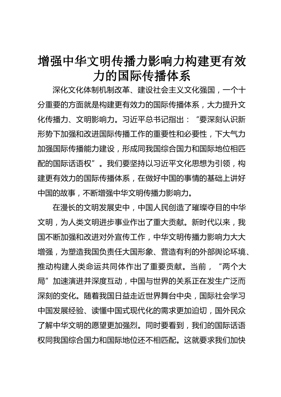 增強(qiáng)中華文明傳播力影響力構(gòu)建更有效力的國(guó)際傳播體系