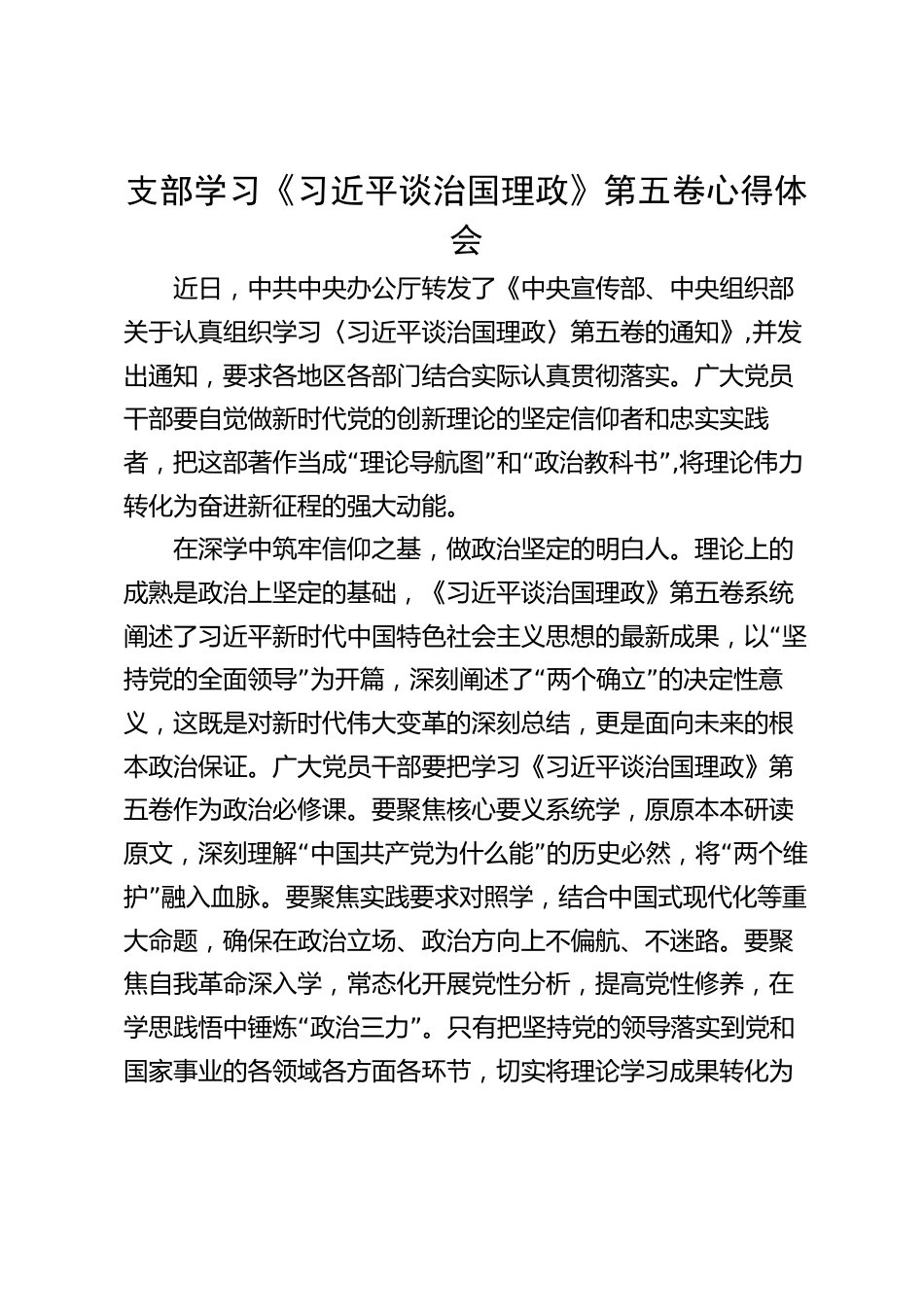 支部學(xué)習(xí)《習(xí)近平談治國(guó)理政》第五卷心得體會(huì)