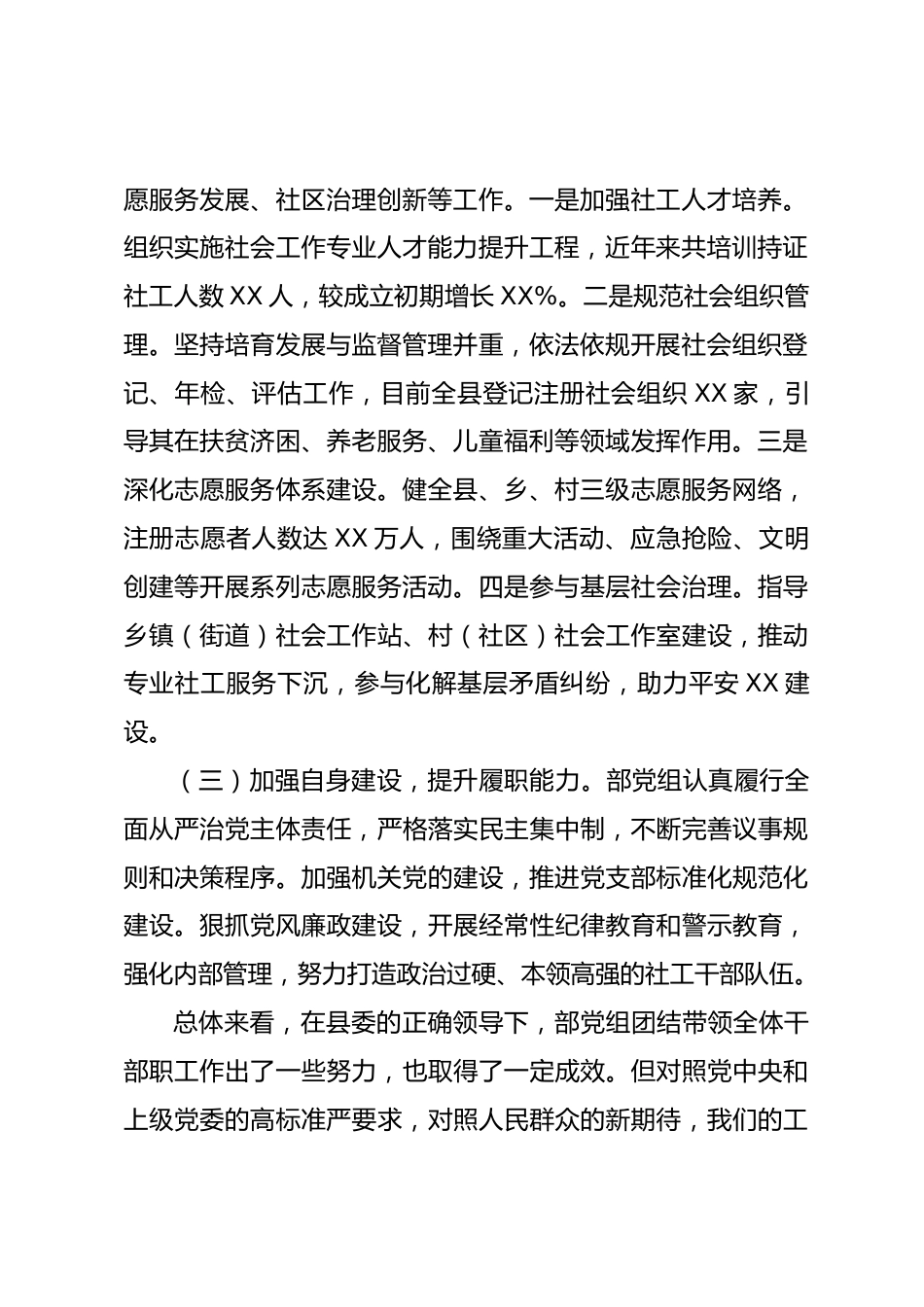 中共XX縣委社會工作部黨組工作情況匯報(向縣委巡察組)