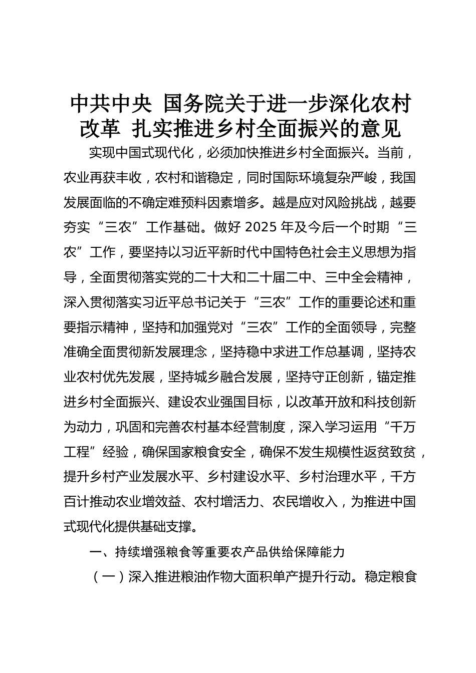 中共中央?國(guó)務(wù)院關(guān)于進(jìn)一步深化農(nóng)村改革?扎實(shí)推進(jìn)鄉(xiāng)村全面振興的意見