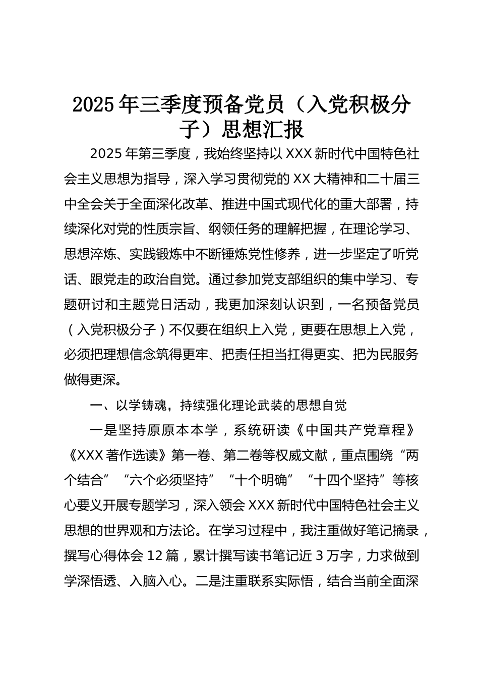 2025年三季度預(yù)備黨員(入黨積極分子)思想?yún)R報(bào)