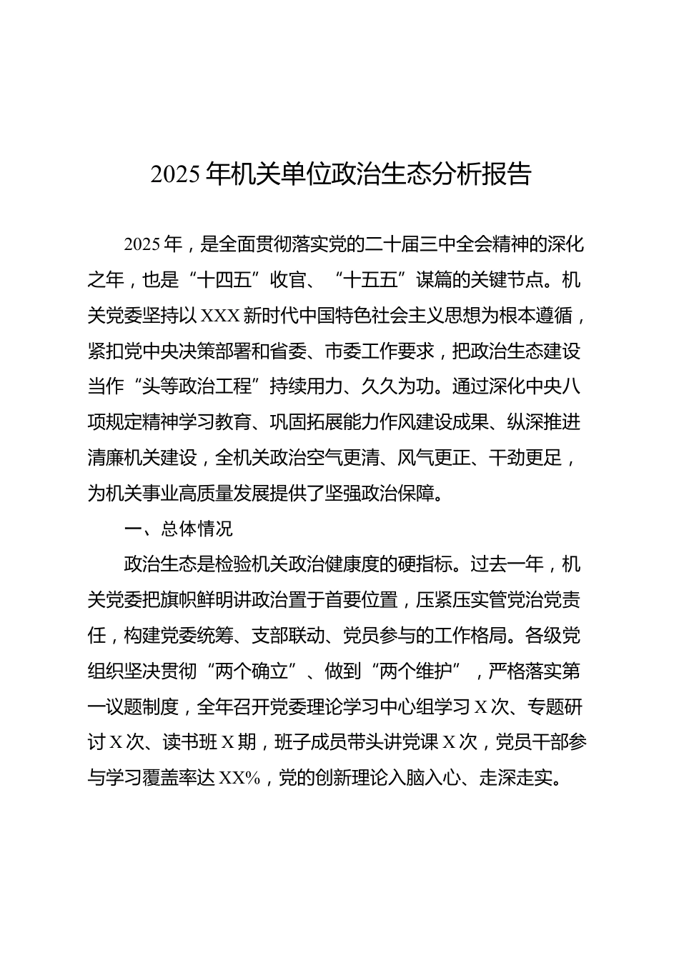 2025年機(jī)關(guān)單位政治生態(tài)分析報(bào)告