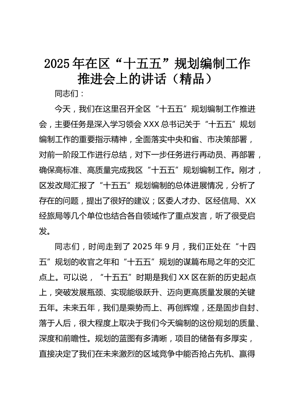 2025年在區(qū)“十五五”規(guī)劃編制工作推進會上的講話(精品)