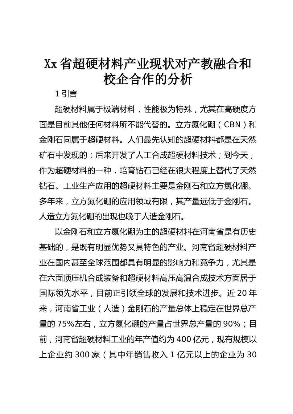 Xx省超硬材料產(chǎn)業(yè)現(xiàn)狀對產(chǎn)教融合和校企合作的分析