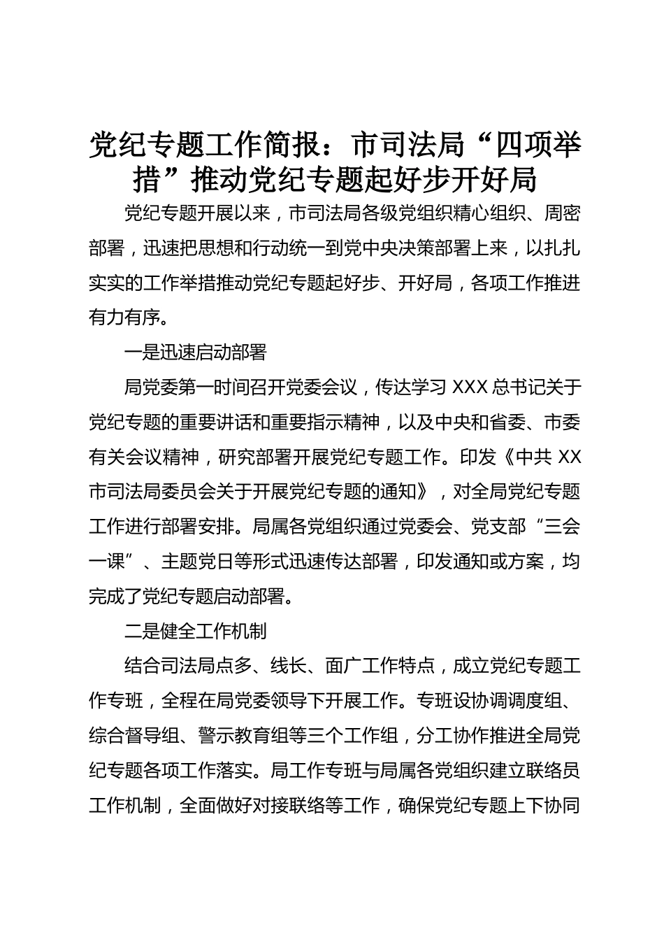 黨紀(jì)專題工作簡報(bào):市司法局“四項(xiàng)舉措”推動(dòng)黨紀(jì)專題起好步開好局