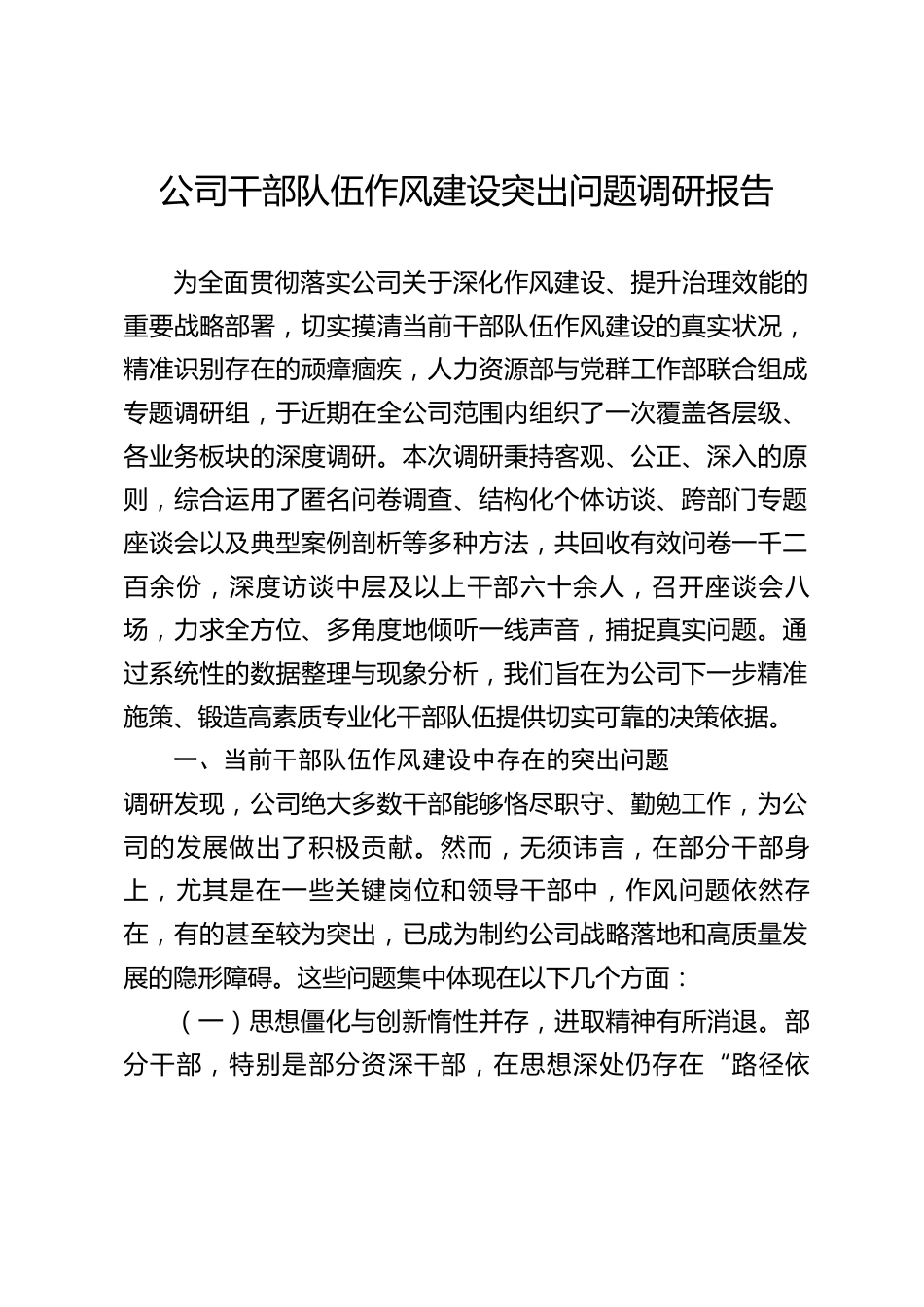 公司干部隊(duì)伍作風(fēng)建設(shè)突出問題調(diào)研報(bào)告