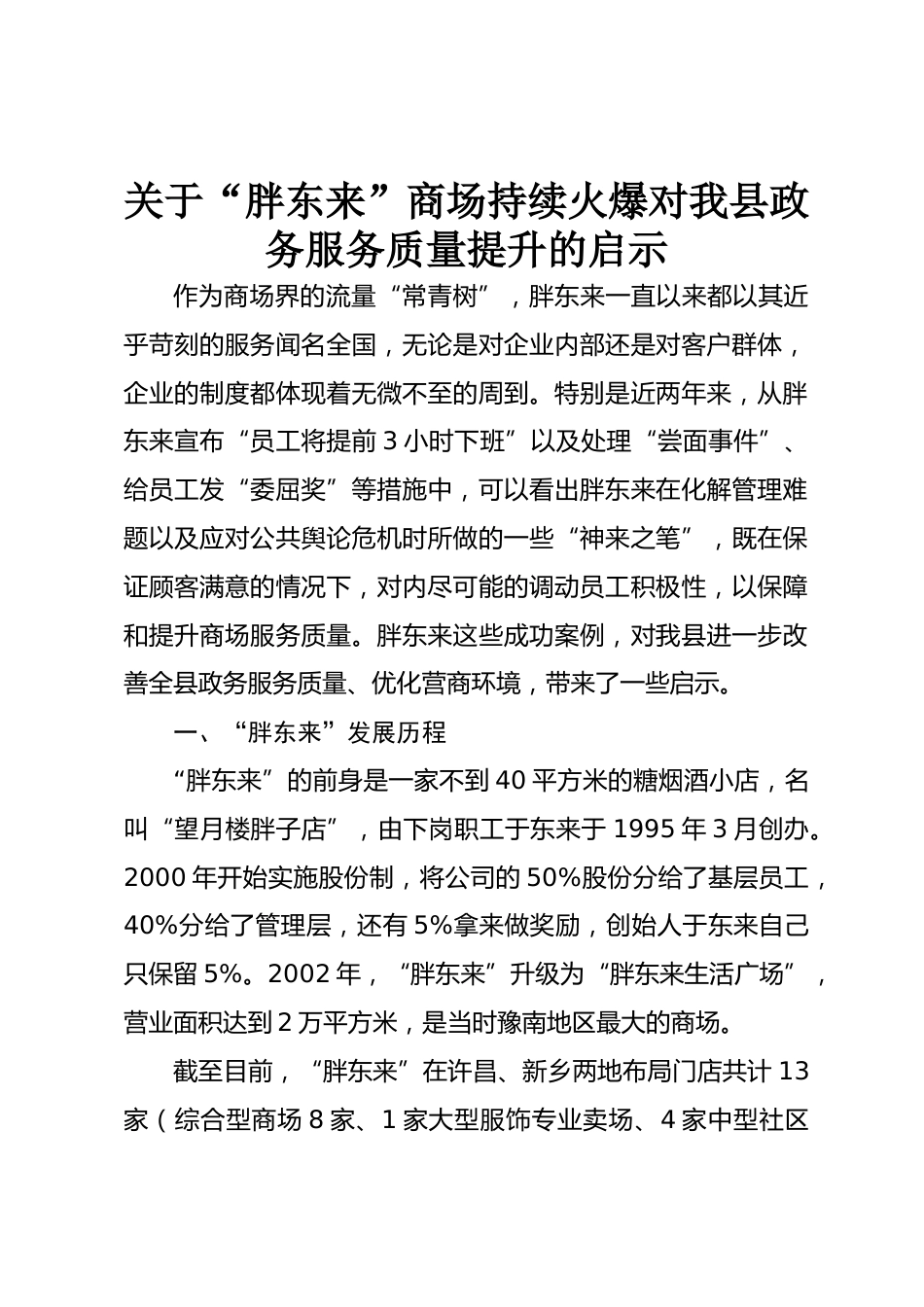 關(guān)于“胖東來”商場持續(xù)火爆對我縣政務(wù)服務(wù)質(zhì)量提升的啟示