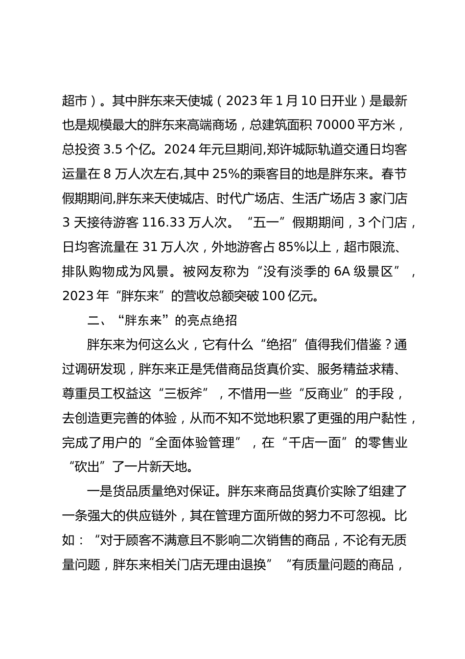 關(guān)于“胖東來”商場持續(xù)火爆對我縣政務(wù)服務(wù)質(zhì)量提升的啟示作為商場界的流量“常青樹”,胖東來一直以來都以其近乎苛刻的服務(wù)聞名全國,無論是對企業(yè)內(nèi)部還是對客戶群體,企業(yè)的制度都體現(xiàn)著無微不至的周到。特別是近兩年來,從胖東來宣布“員工將提前3小時下班”以及處理“嘗面事件”、給員工發(fā)“委屈獎”等措施中,可以看出胖東來在化解管理難題以及應(yīng)對公共輿論危機時所做的一些“神來之筆”,既在保證顧客滿意的情況下,對內(nèi)盡可能的調(diào)動員工積極性,以保障和提升商場服務(wù)質(zhì)量。胖東來這些成功案例,對我縣進一步改善全縣政務(wù)服務(wù)質(zhì)量、優(yōu)化營商環(huán)境,帶來了一些啟示...