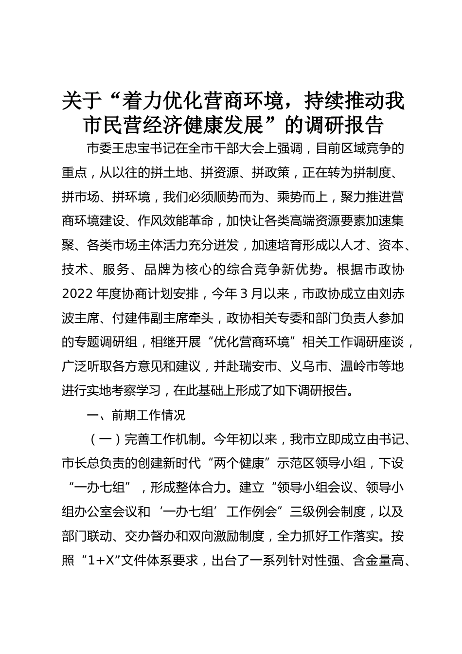 關(guān)于“著力優(yōu)化營商環(huán)境,持續(xù)推動我市民營經(jīng)濟(jì)健康發(fā)展”的調(diào)研報告