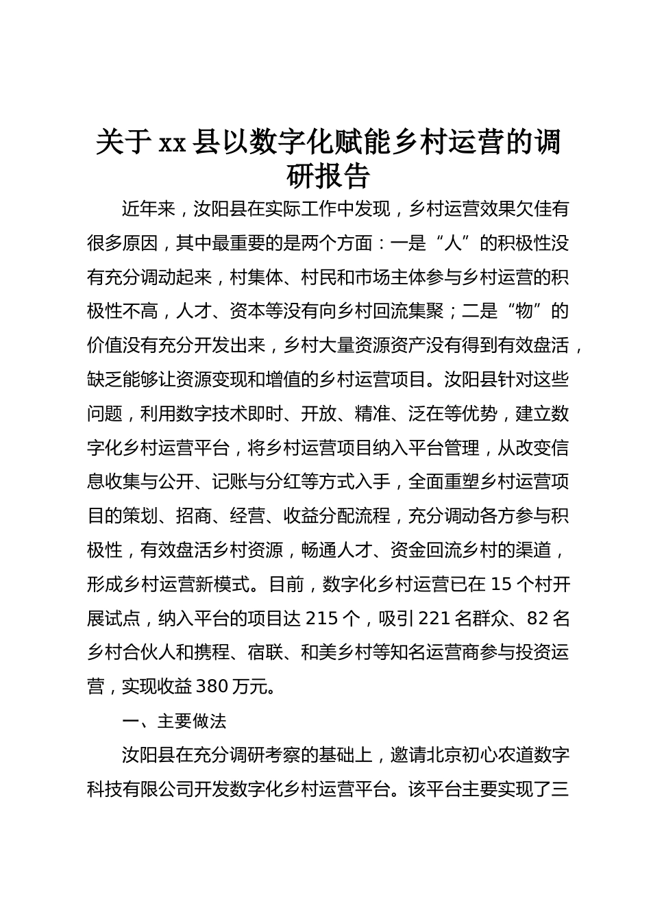關于xx縣以數(shù)字化賦能鄉(xiāng)村運營的調研報告