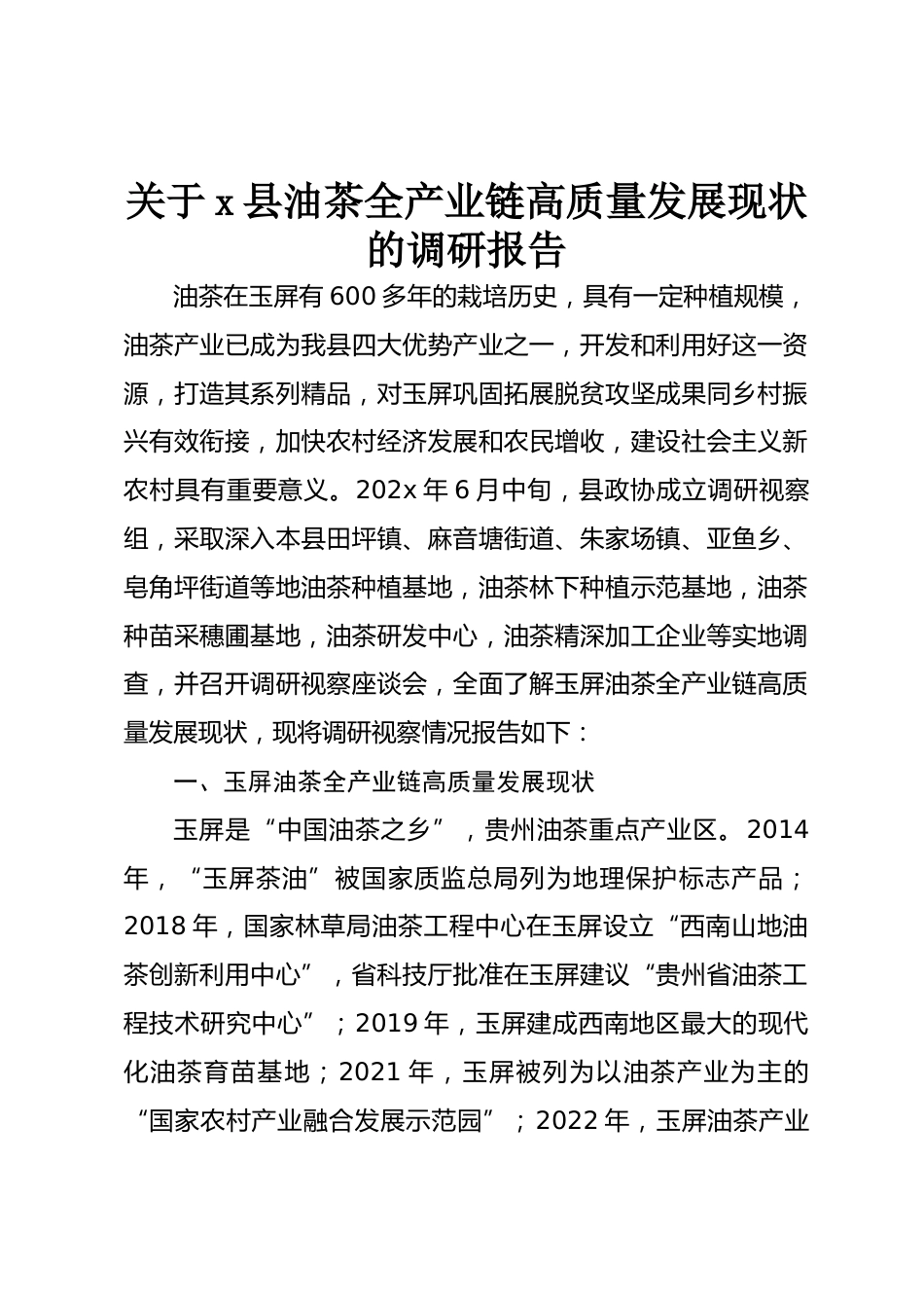 關(guān)于x縣油茶全產(chǎn)業(yè)鏈高質(zhì)量發(fā)展現(xiàn)狀的調(diào)研報(bào)告