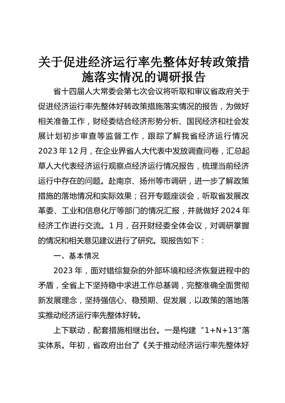 關(guān)于促進(jìn)經(jīng)濟(jì)運(yùn)行率先整體好轉(zhuǎn)政策措施落實(shí)情況的調(diào)研報(bào)告