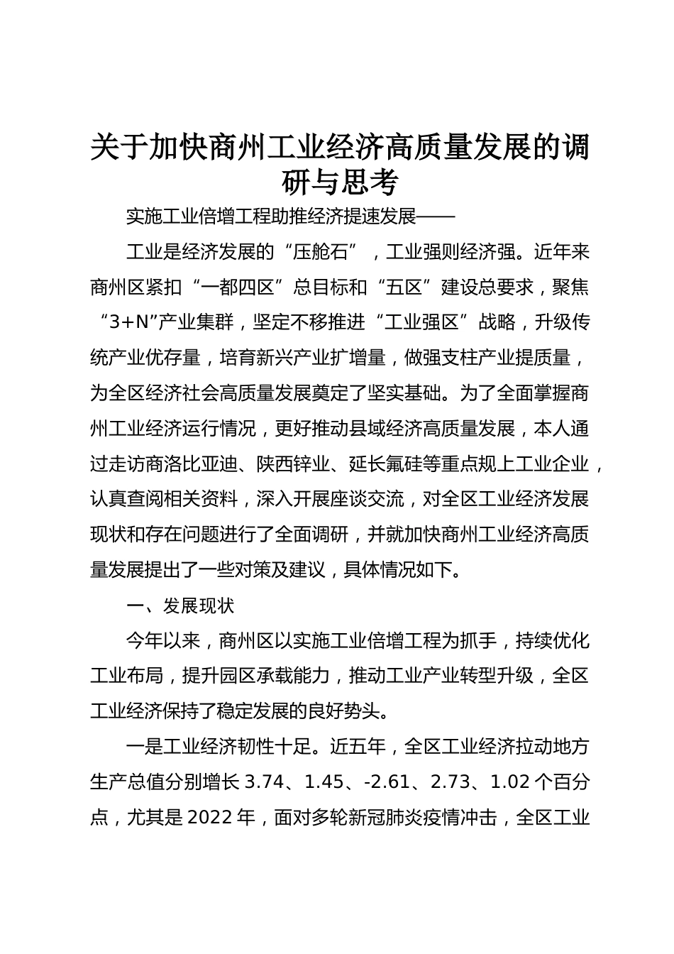 關(guān)于加快商州工業(yè)經(jīng)濟(jì)高質(zhì)量發(fā)展的調(diào)研與思考