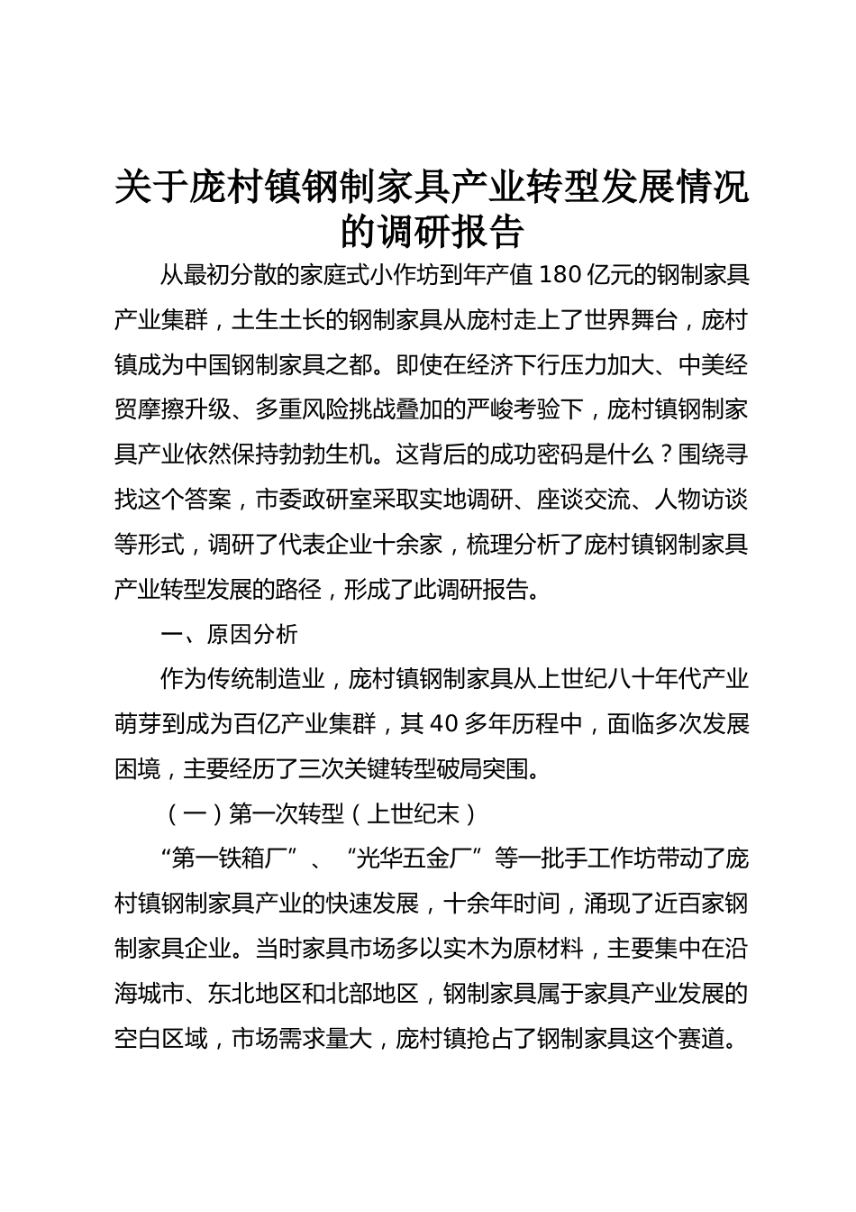 關(guān)于龐村鎮(zhèn)鋼制家具產(chǎn)業(yè)轉(zhuǎn)型發(fā)展情況的調(diào)研報告