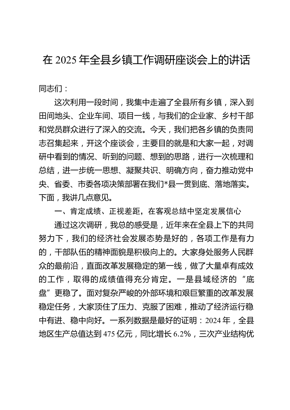 在2025年全縣鄉(xiāng)鎮(zhèn)工作調(diào)研座談會(huì)上的講話
