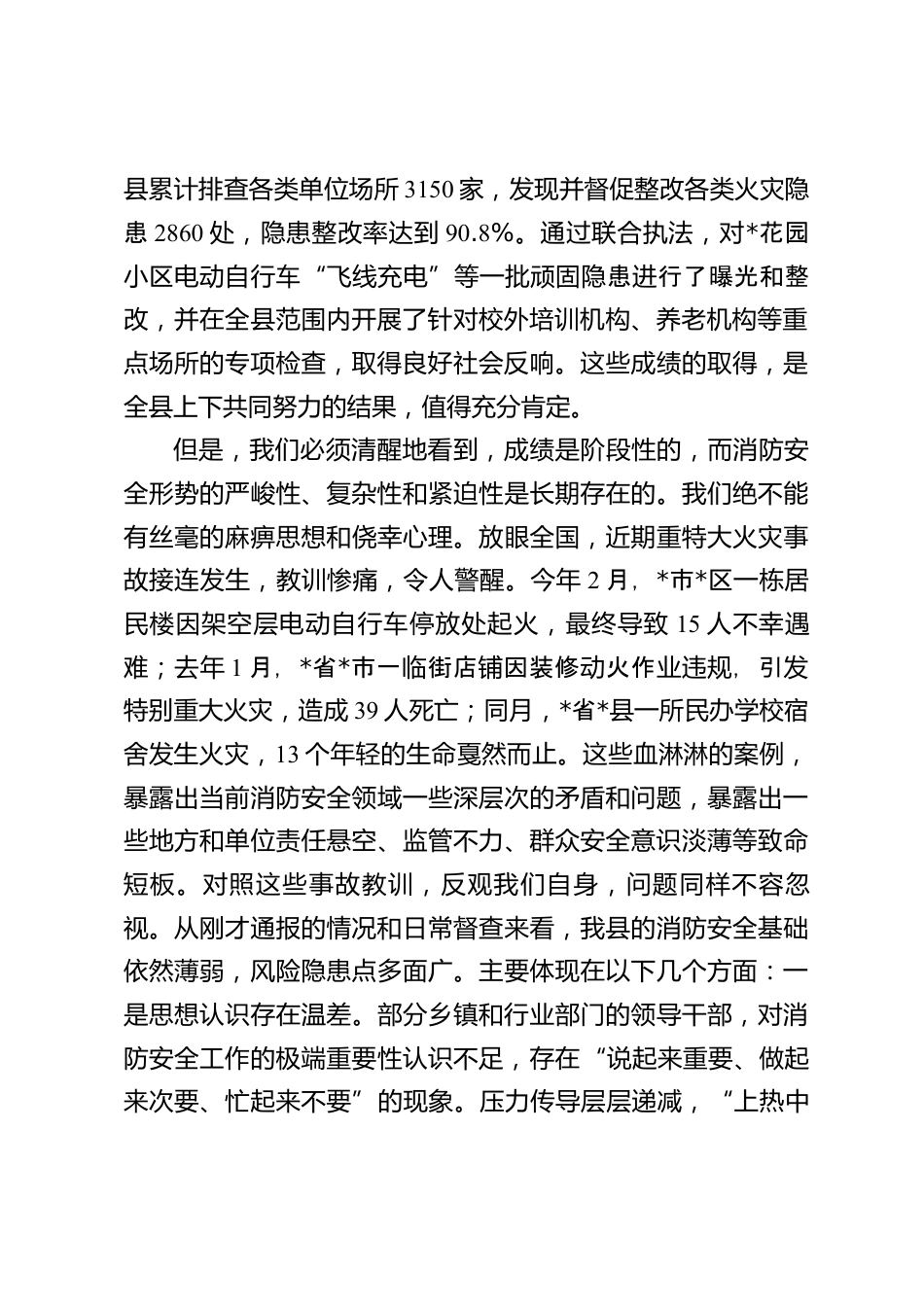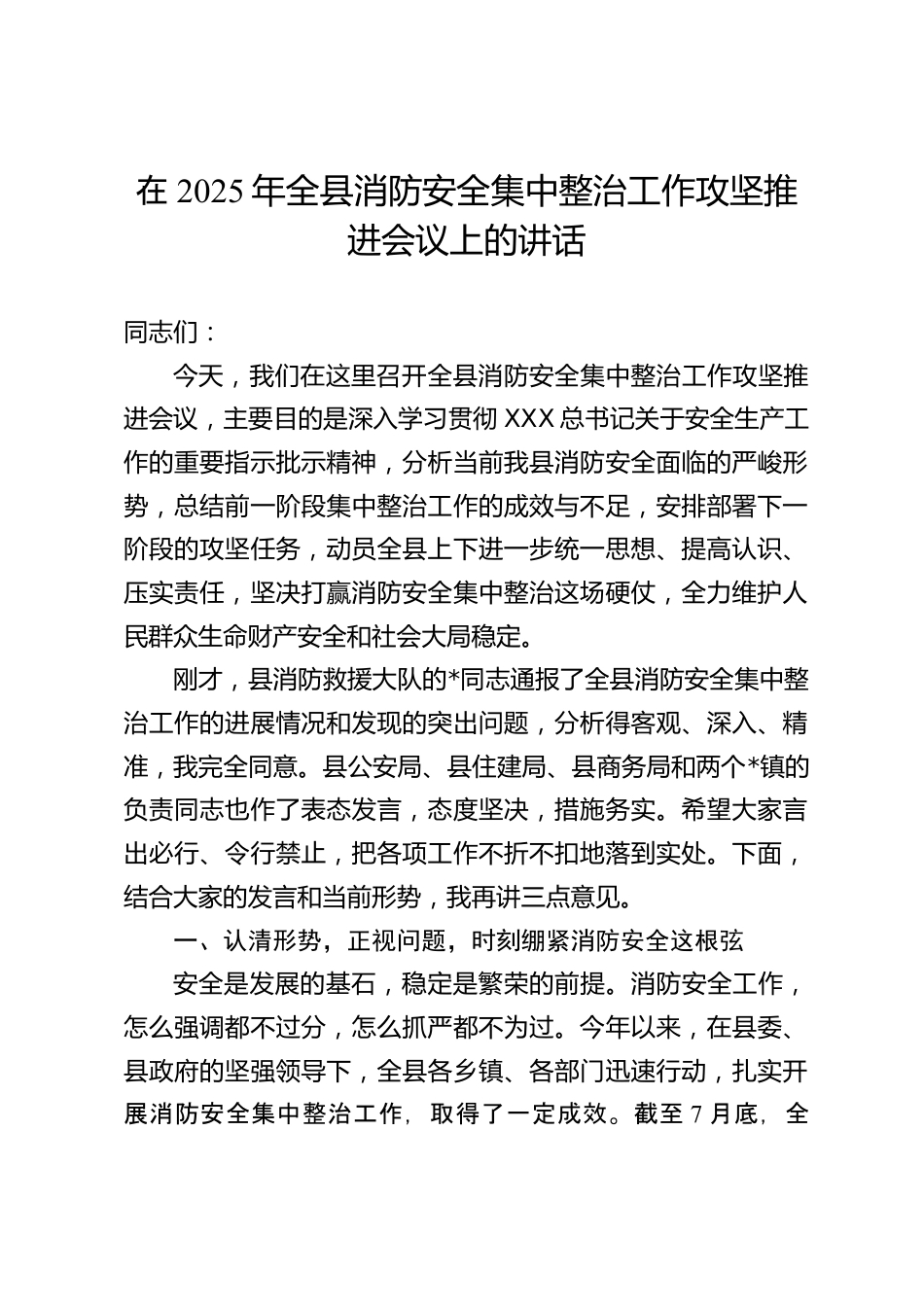 在2025年全縣消防安全集中整治工作攻堅(jiān)推進(jìn)會(huì)議上的講話