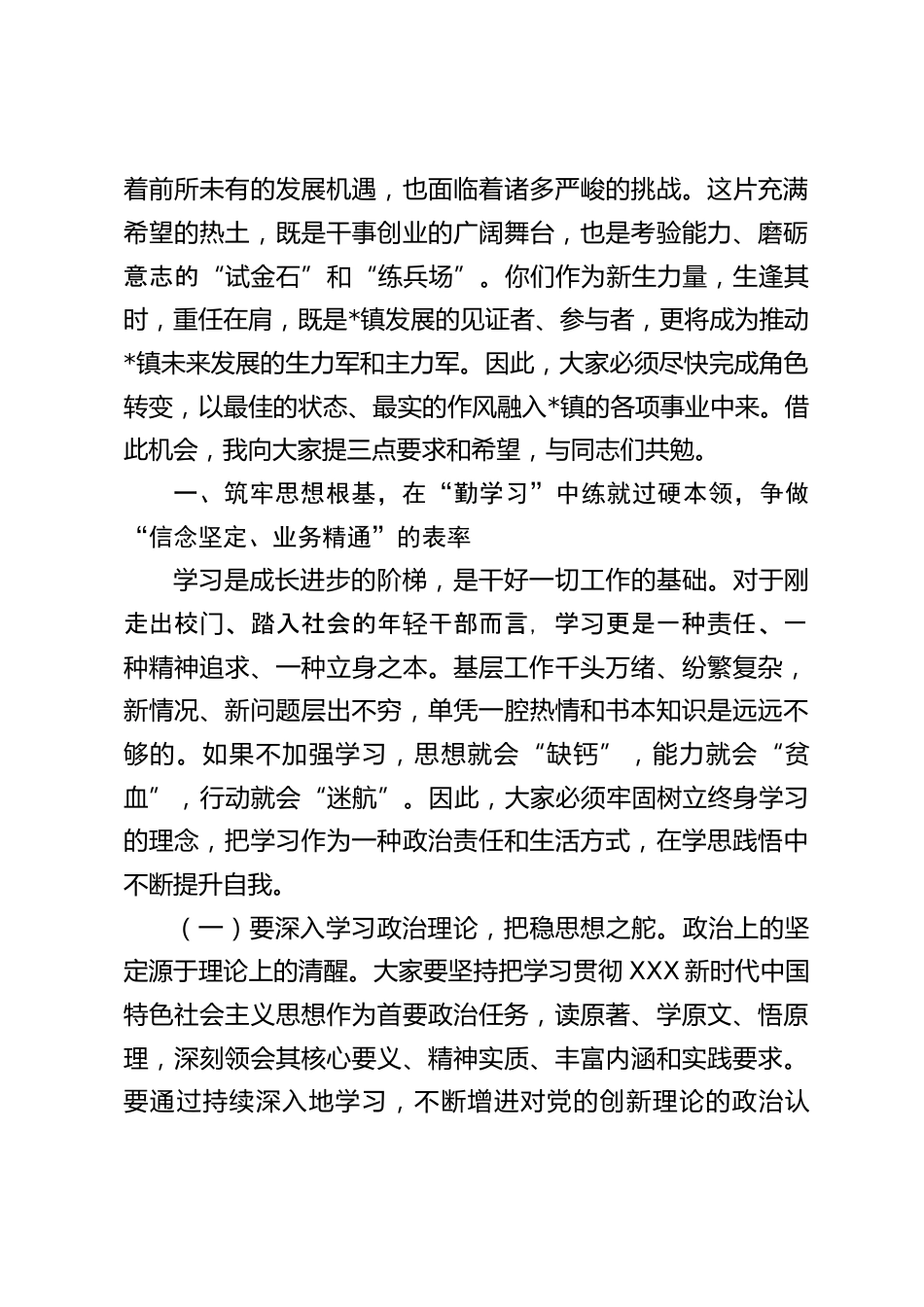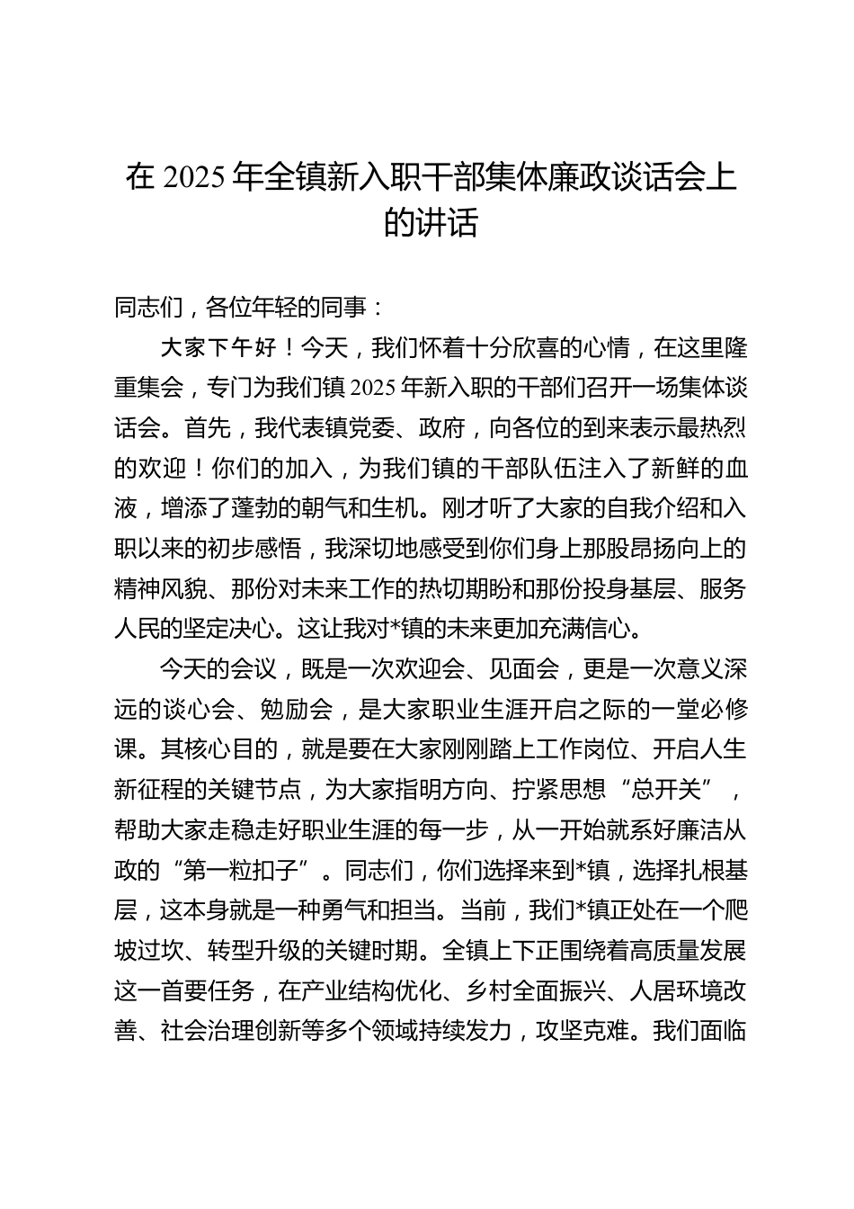 在2025年全鎮(zhèn)新入職干部集體廉政談話會(huì)上的講話