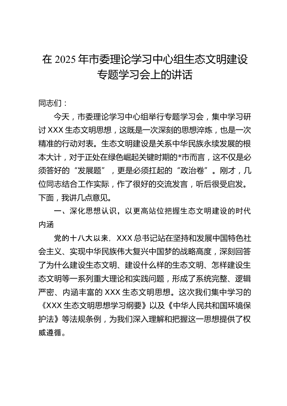 在2025年市委理論學(xué)習(xí)中心組生態(tài)文明建設(shè)專題學(xué)習(xí)會(huì)上的講話
