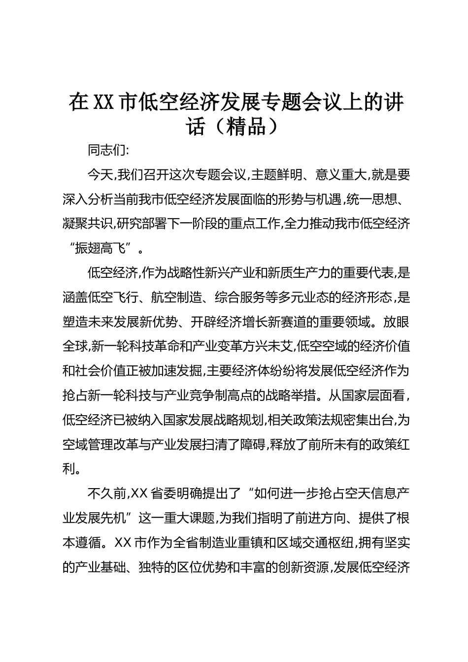 在XX市低空經(jīng)濟發(fā)展專題會議上的講話(精品)