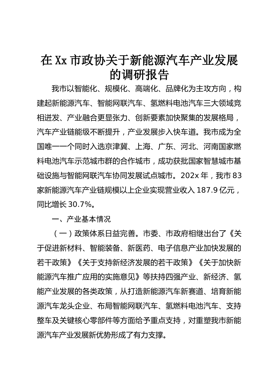 在Xx市政協(xié)關(guān)于新能源汽車產(chǎn)業(yè)發(fā)展的調(diào)研報告