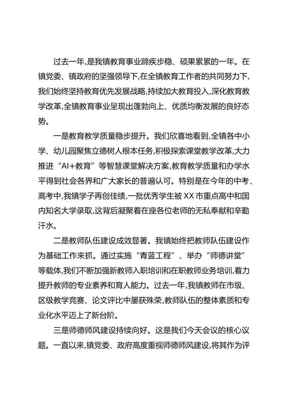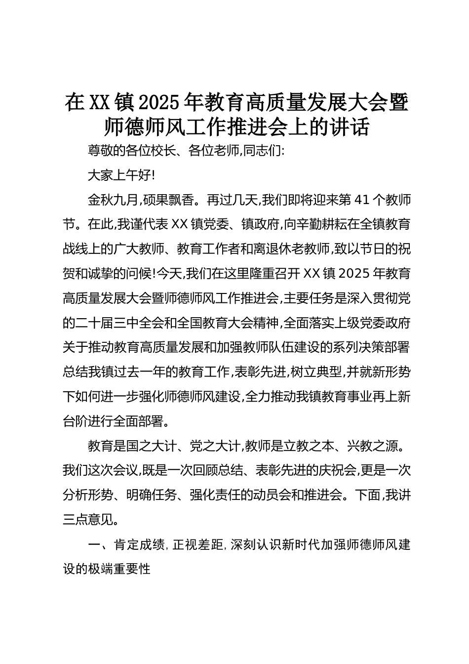 在XX鎮(zhèn)2025年教育高質(zhì)量發(fā)展大會暨師德師風(fēng)工作推進會上的講話