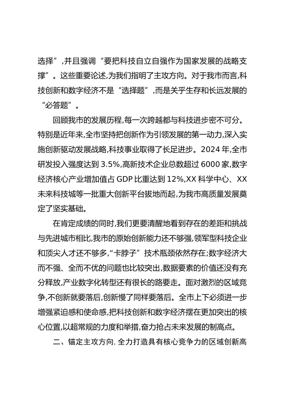 在全市科技創(chuàng)新與數(shù)字經(jīng)濟發(fā)展大會上的講話