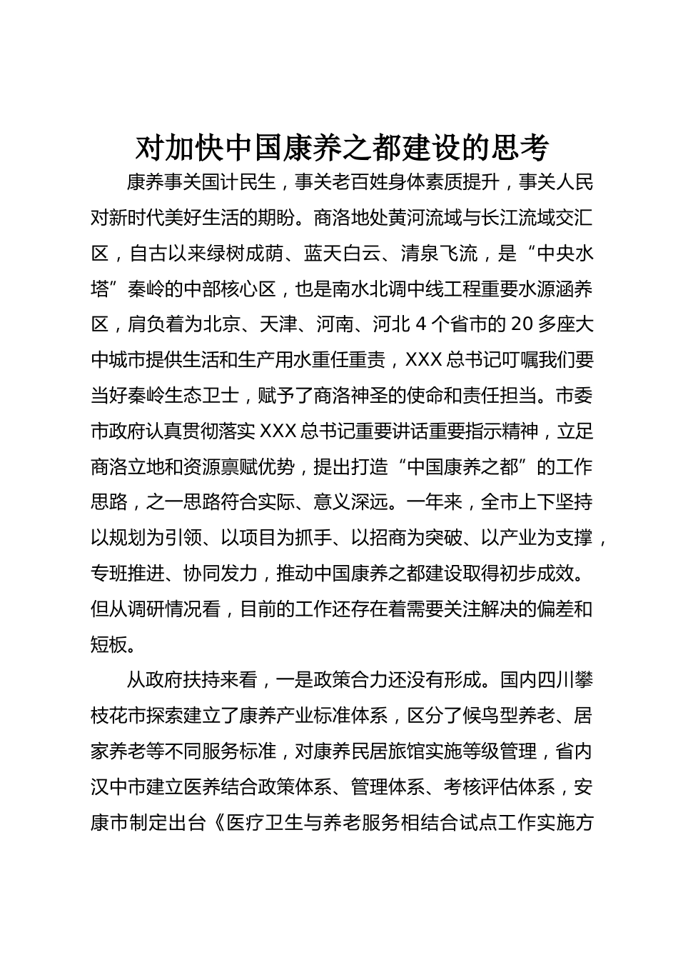 對加快中國康養(yǎng)之都建設(shè)的思考