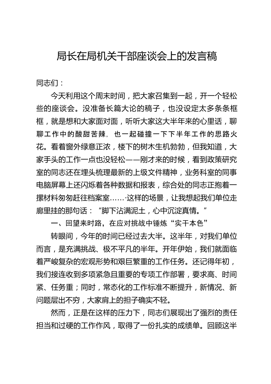 局長(zhǎng)在局機(jī)關(guān)干部座談會(huì)上的發(fā)言稿
