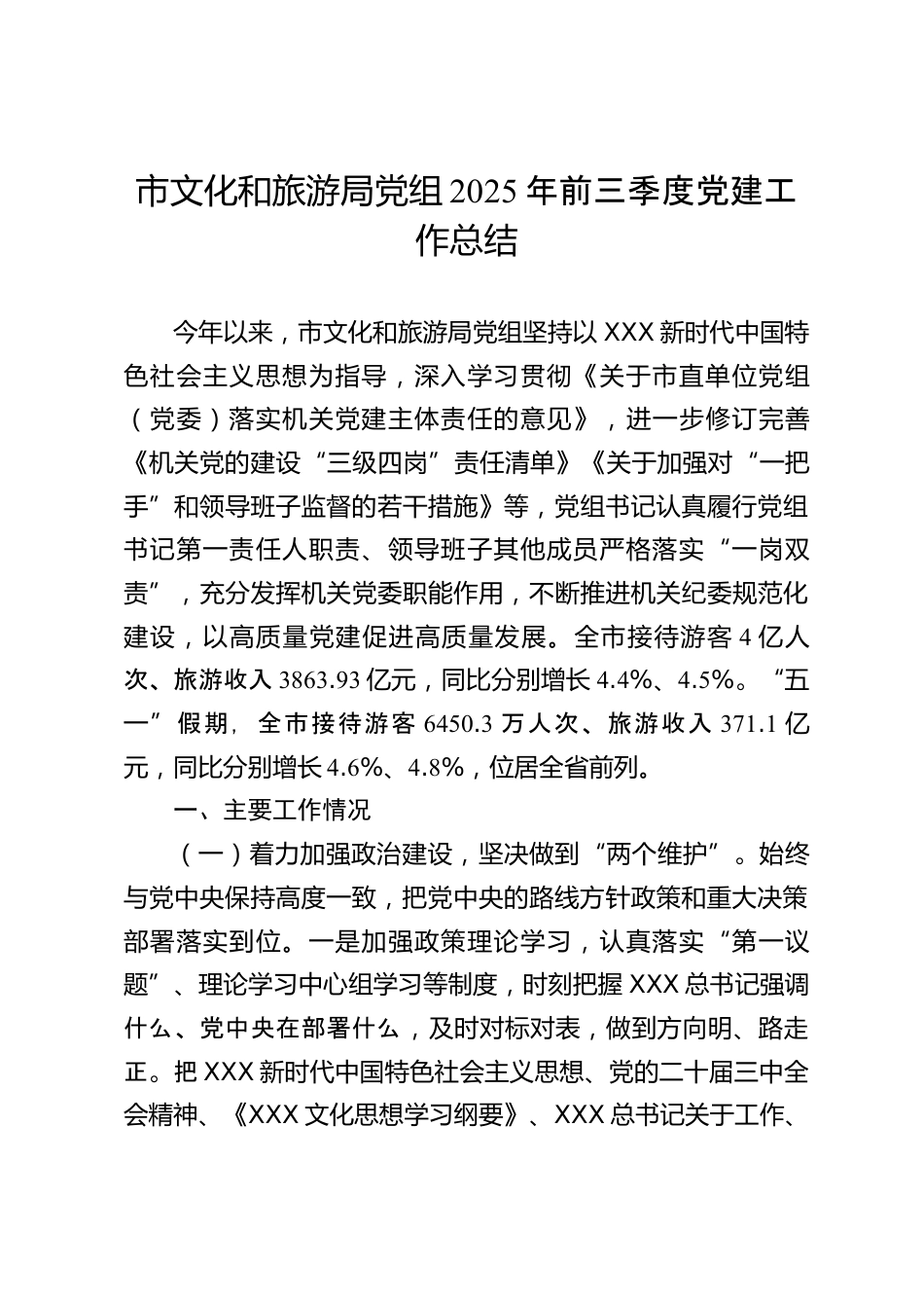 市文化和旅游局黨組2025年前三季度黨建工作總結(jié)