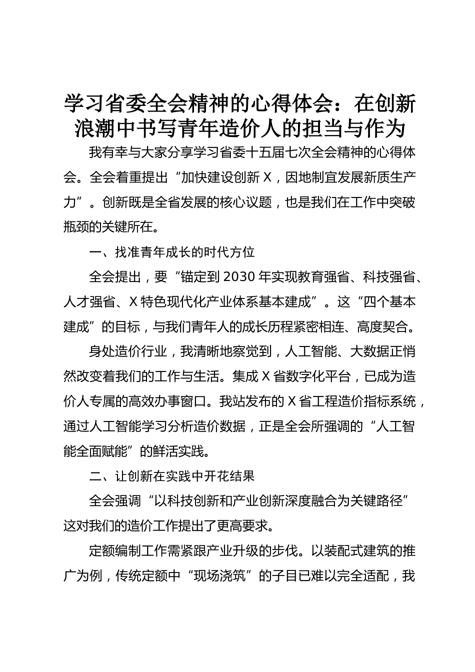 學(xué)習(xí)省委全會(huì)精神的心得體會(huì):在創(chuàng)新浪潮中書寫青年造價(jià)人的擔(dān)當(dāng)與作為