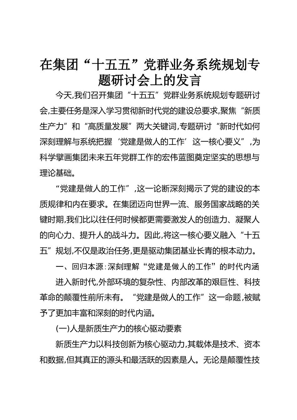 在集團(tuán)“十五五”黨群業(yè)務(wù)系統(tǒng)規(guī)劃專題研討會(huì)上的發(fā)言