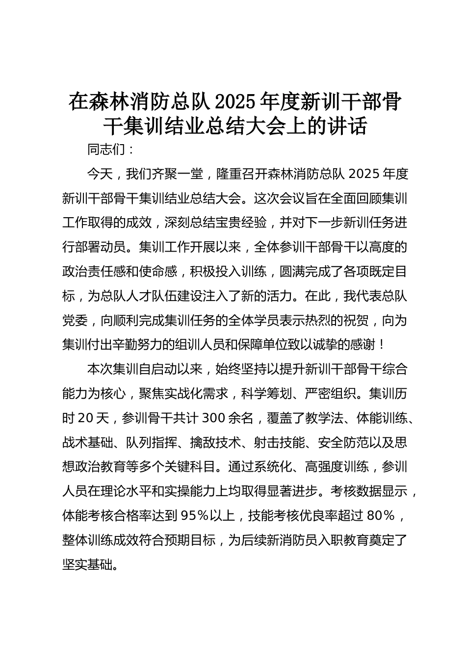 在森林消防總隊(duì)2025年度新訓(xùn)干部骨干集訓(xùn)結(jié)業(yè)總結(jié)大會(huì)上的講話