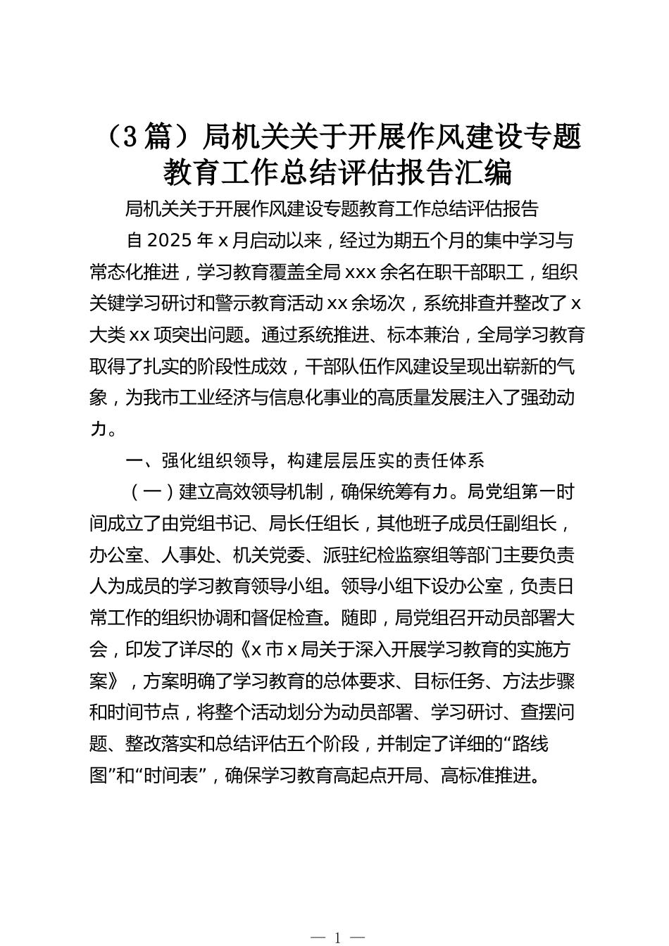 (3篇)局機關(guān)關(guān)于開展作風(fēng)建設(shè)專題教育工作總結(jié)評估報告匯編