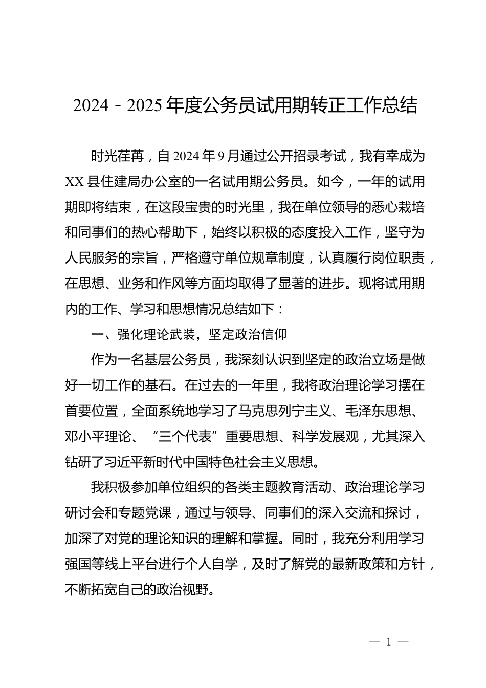 2024-2025 年度公務(wù)員試用期轉(zhuǎn)正工作總結(jié)