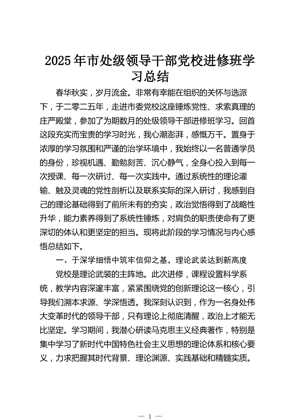 2025年市處級(jí)領(lǐng)導(dǎo)干部黨校進(jìn)修班學(xué)習(xí)總結(jié)
