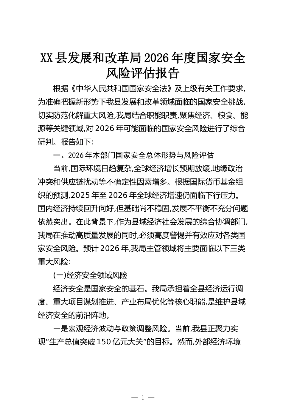 XX縣發(fā)展和改革局2026年度國家安全風(fēng)險(xiǎn)評估報(bào)告