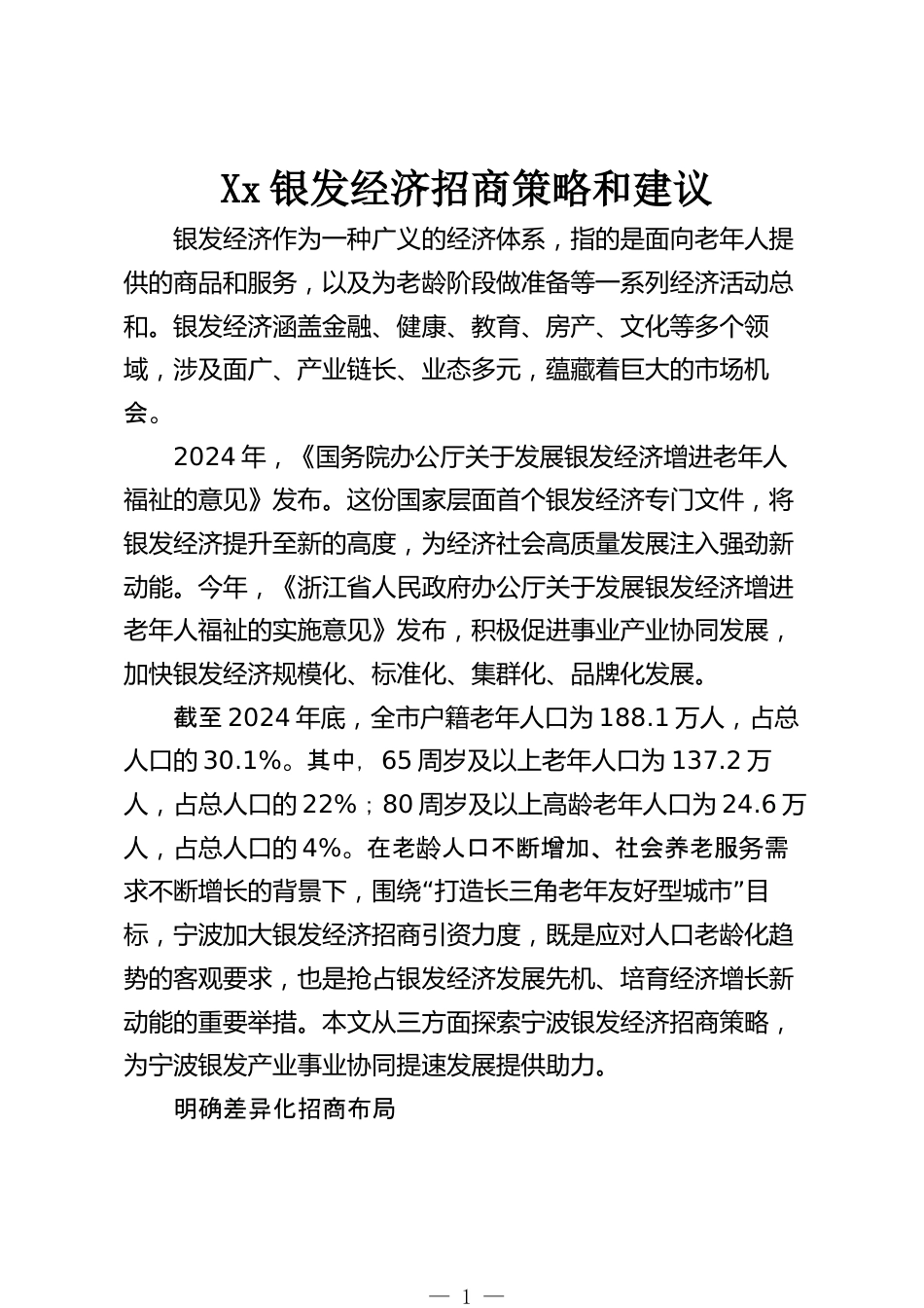 Xx銀發(fā)經(jīng)濟(jì)招商策略和建議