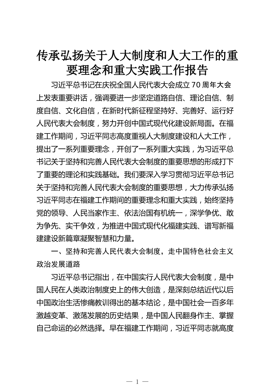 傳承弘揚關(guān)于人大制度和人大工作的重要理念和重大實踐工作報告