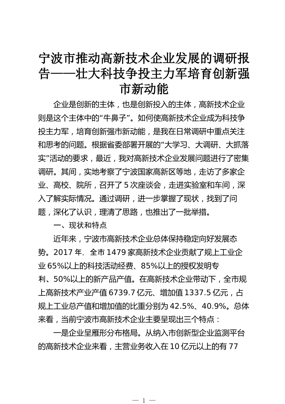 寧波市推動高新技術(shù)企業(yè)發(fā)展的調(diào)研報(bào)告——壯大科技爭投主力軍 培育創(chuàng)新強(qiáng)市新動能
