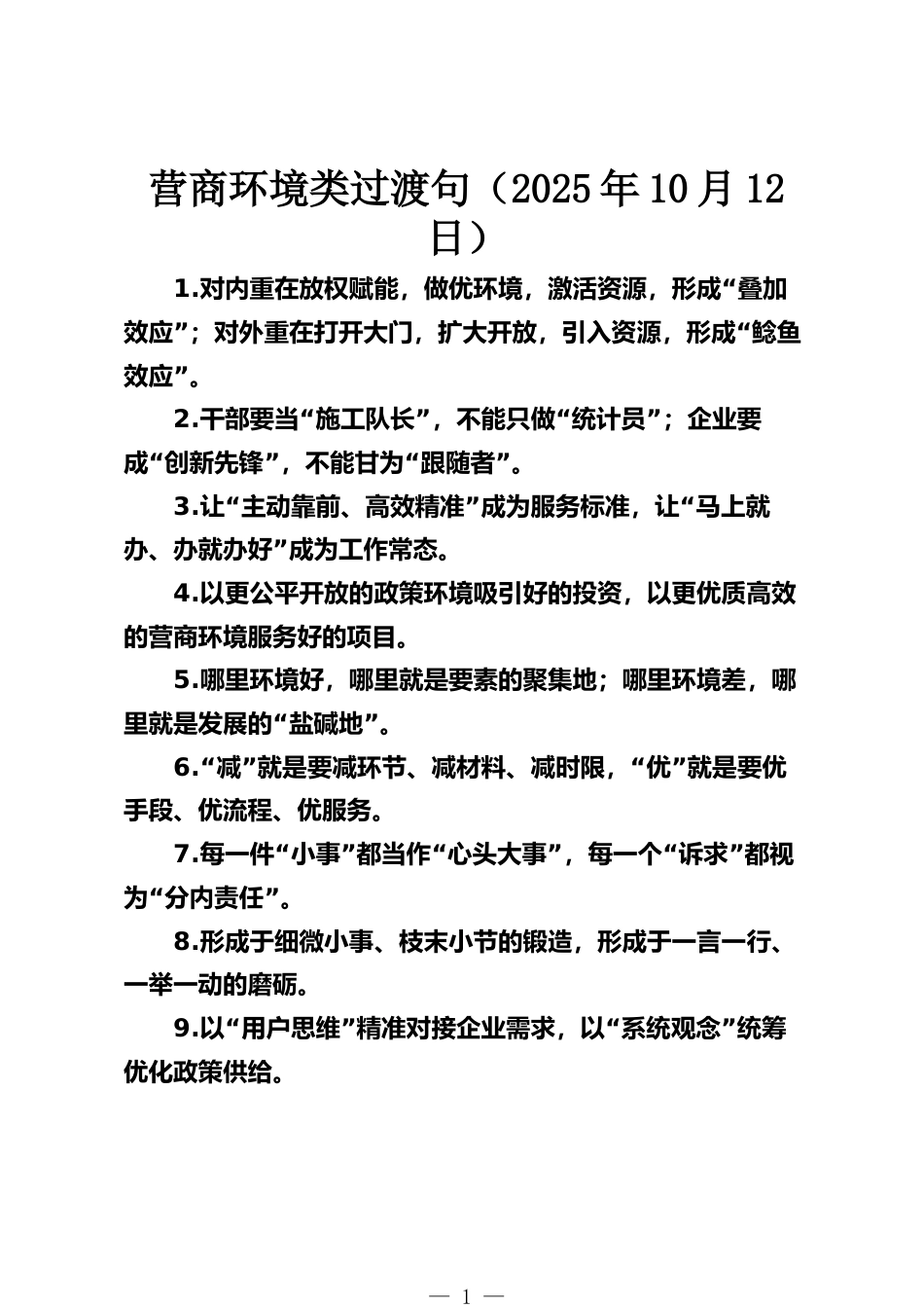 營商環(huán)境類過渡句(2025年10月12日)