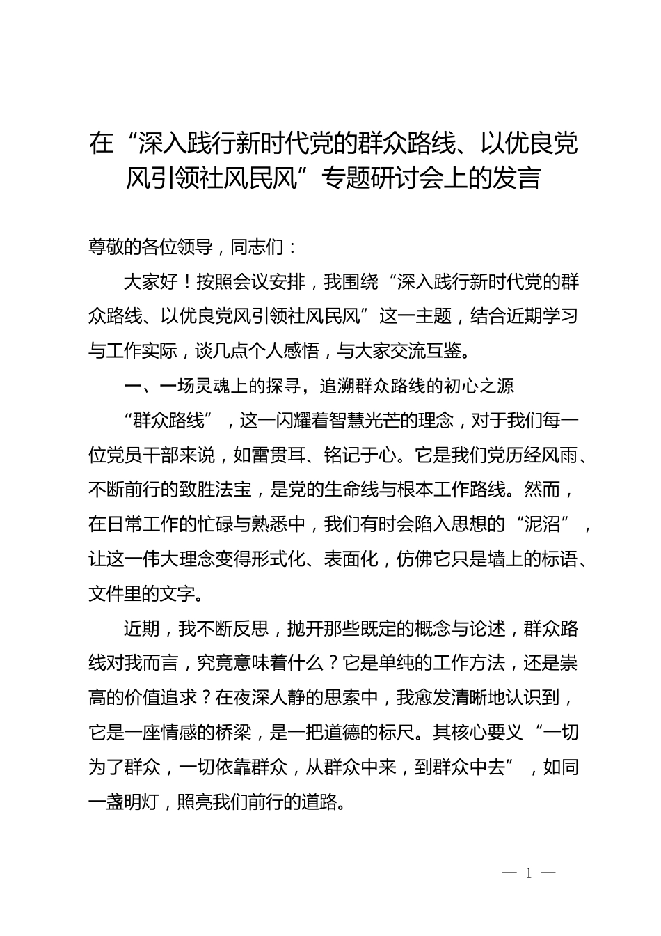 在“深入踐行新時代黨的群眾路線、以優(yōu)良黨風引領社風民風”專題研討會上的發(fā)言