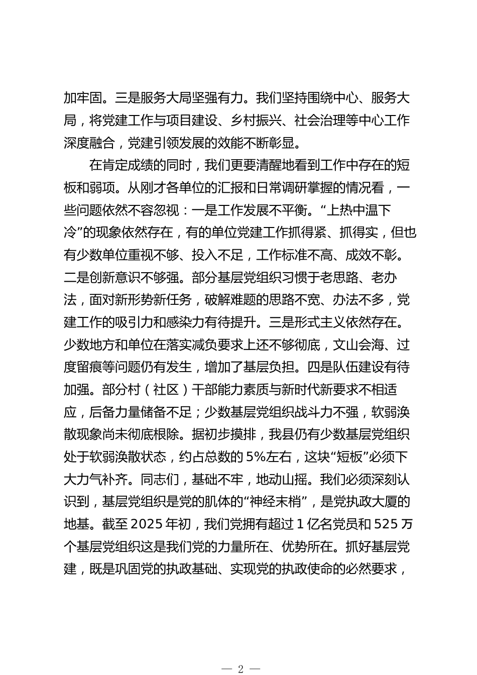 在2025年全縣基層黨建重點(diǎn)任務(wù)推進(jìn)會(huì)上的講話
